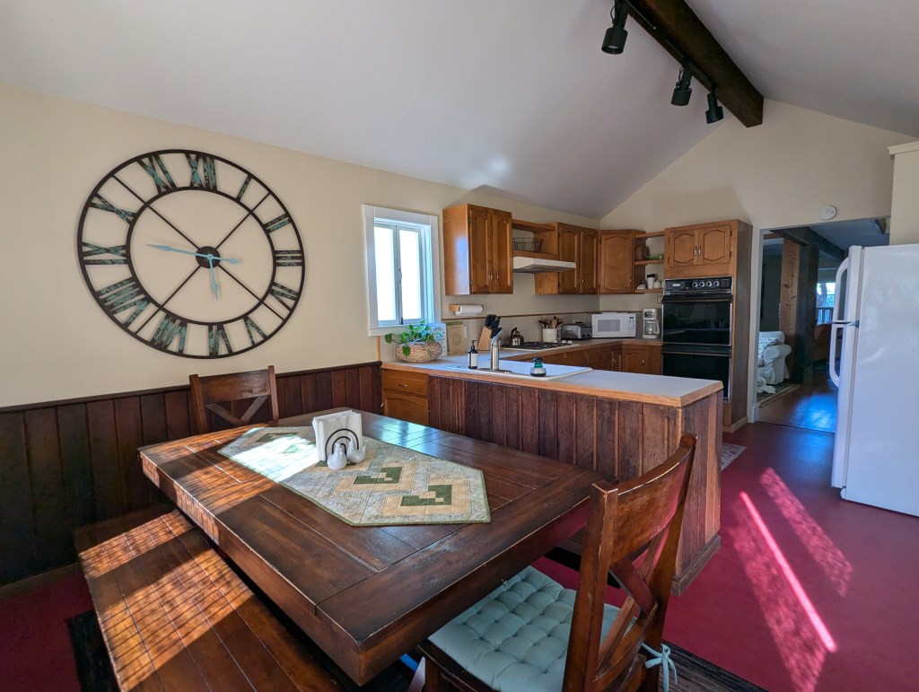 Relax on comfortable couches and chairs while enjoying a movie or reading a book from our library, whip up something special or a picnic lunch in our kitchen that’s stocked with everything but the groceries, or relax on the deck.