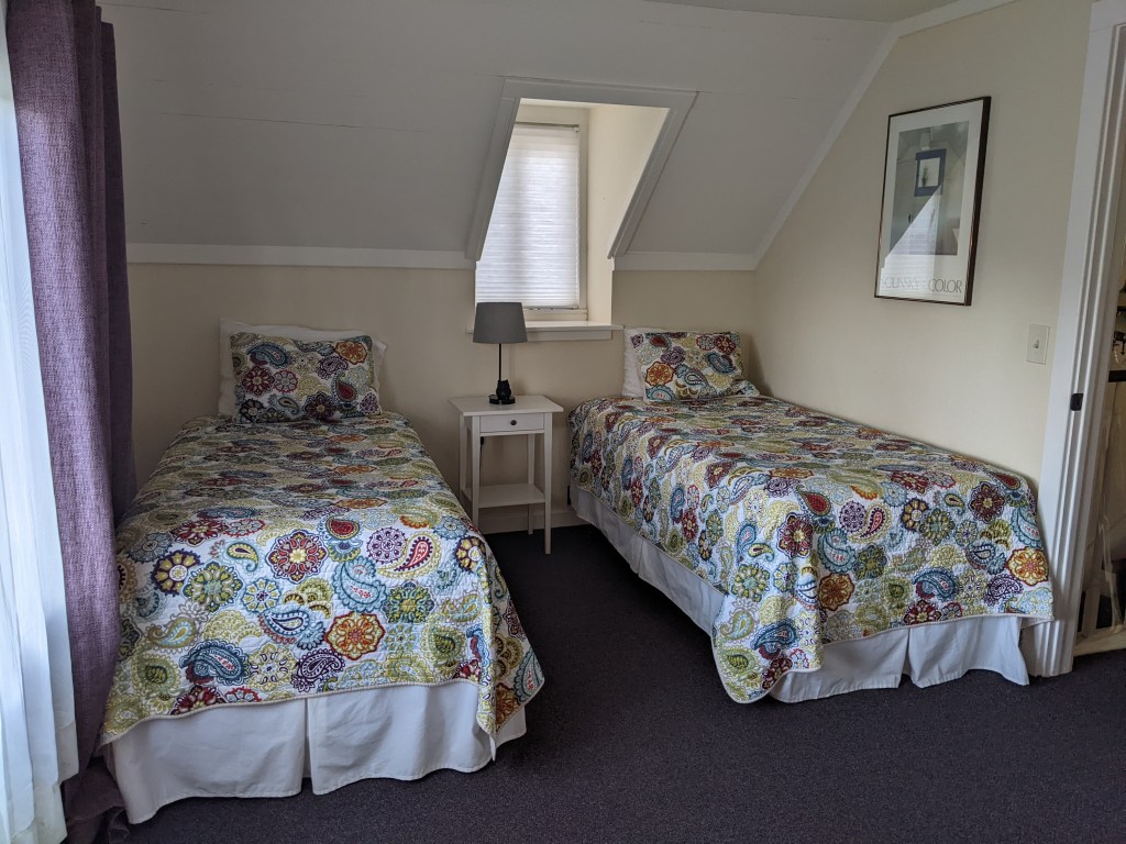 The three bedrooms are just the right balance of cozy and elegant, so you’ll feel right at home. The master bedroom on the main floor has a king bed. One of the bedrooms on the second floor has a queen bed, the other is furnished with twin beds.